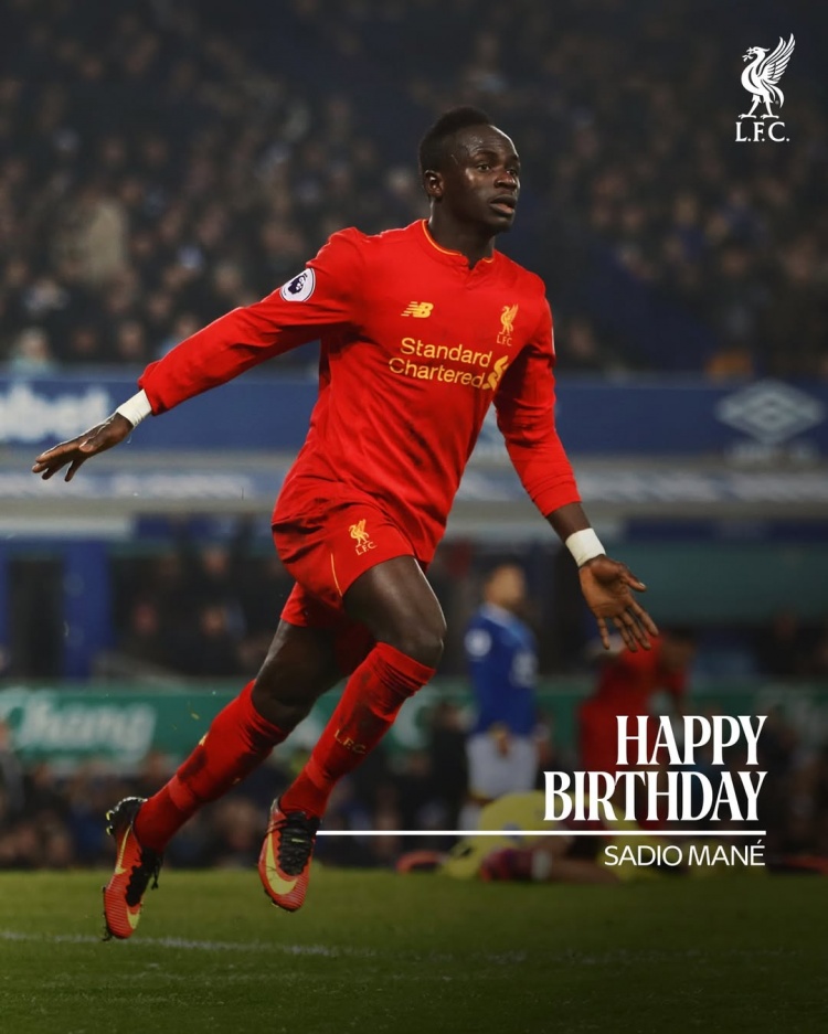 利物浦官方社媒晒出马内海报,配文:“生日快乐,马内!”